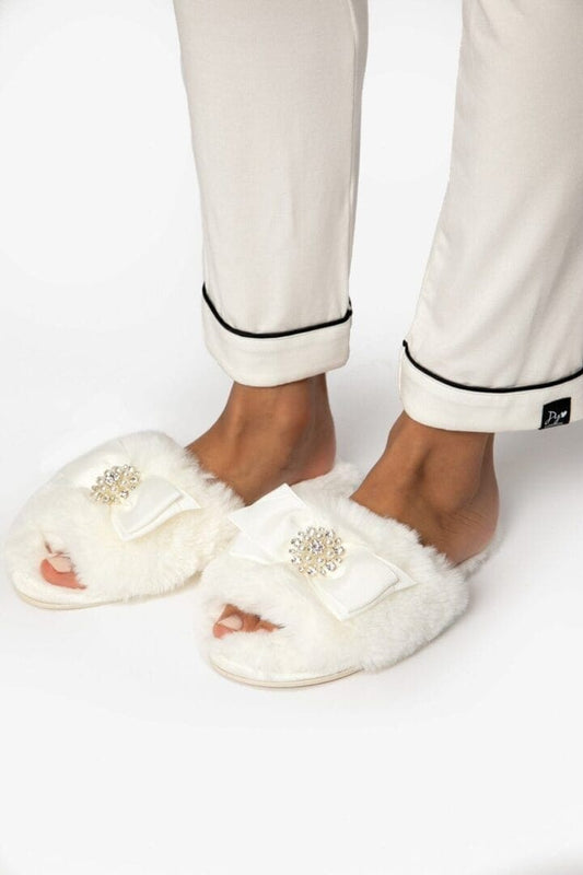 Slipper Anya Ivory One Band With Embellished Bow