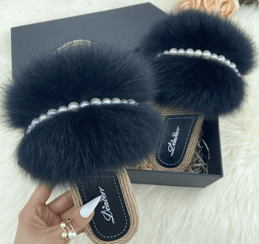 Fur Slides with Pearls