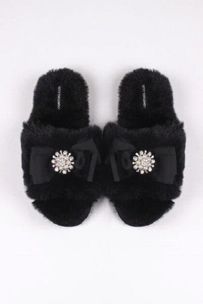 Slipper Amelie Faux Fur Toe-Post With Jewel And Bow Colour Black