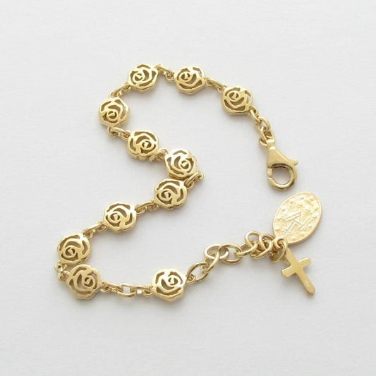 Rose Sterling Silver Cross Crucifix Rosary Bracelet